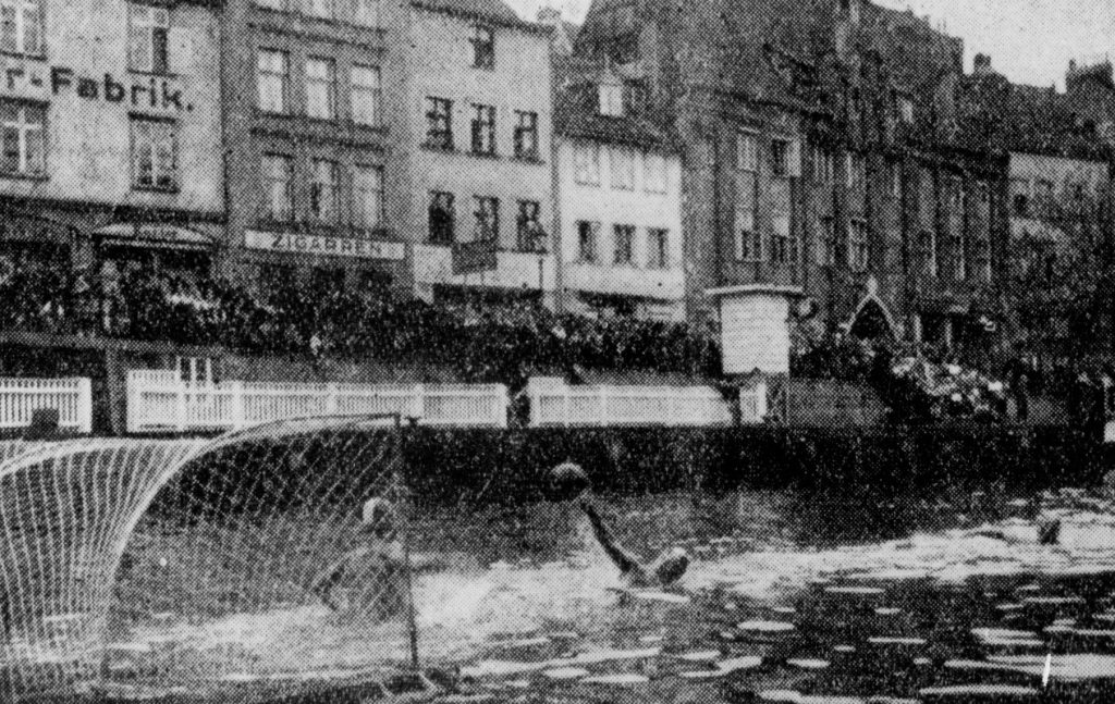 W ubiegłym roku, za sprawą prof. Błażeja Śliwińskiego, „wypłynęło” ciekawe zdjęcie meczu piłki wodnej na Motławie, w reprezentacyjnej części miasta. Zdjęcie datowane jest na rok 1935.