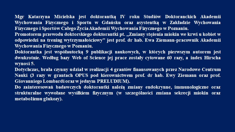 W imieniu Gdańskiego Oddziału Polskiego Towarzystwa Antropologicznego zapraszam na wykład, który poprowadzi mgr Katarzyna Micielska z Zakładu Wychowania Fizycznego i Sportów Całego Życia Akademii Wychowania Fizycznego im. Eugeniusza Piaseckiego w Poznaniu
