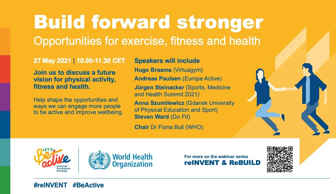 25 maj 2021 Pracownik AWFiS panelistą Światowej Organizacji Zdrowia Światowa Organizacja Zdrowia (WHO) rozpoczyna serię bezpłatnych webinarów poświęconych m.in. regularnej aktywności fizycznej oraz konieczności Więcej...