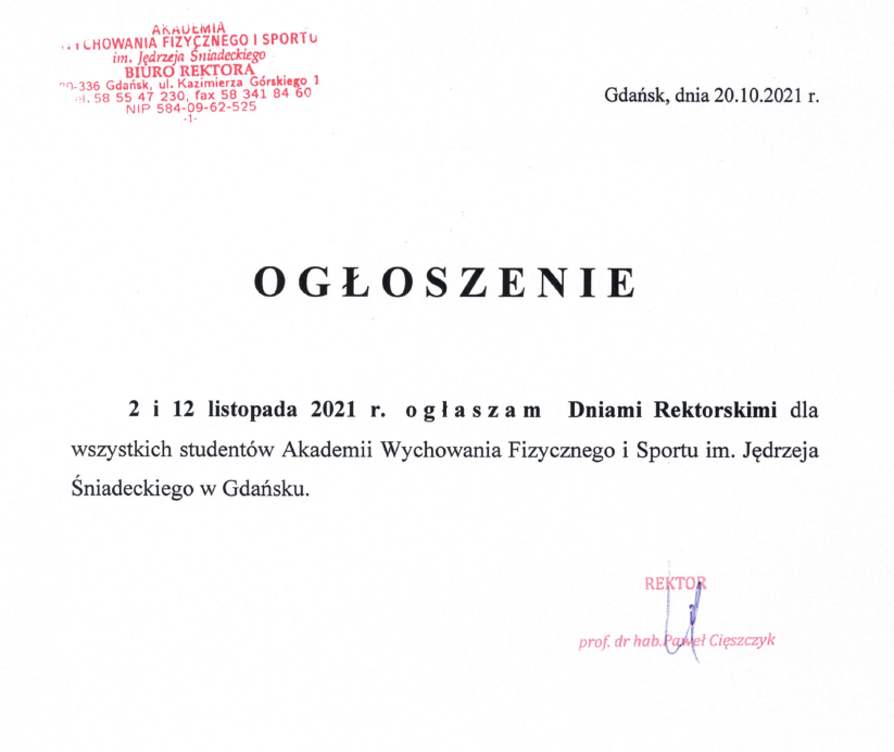 Dni Rektorskie dla wszystkich studentów Akademii Wychowania Fizycznego i Sportu w Gdańsku.