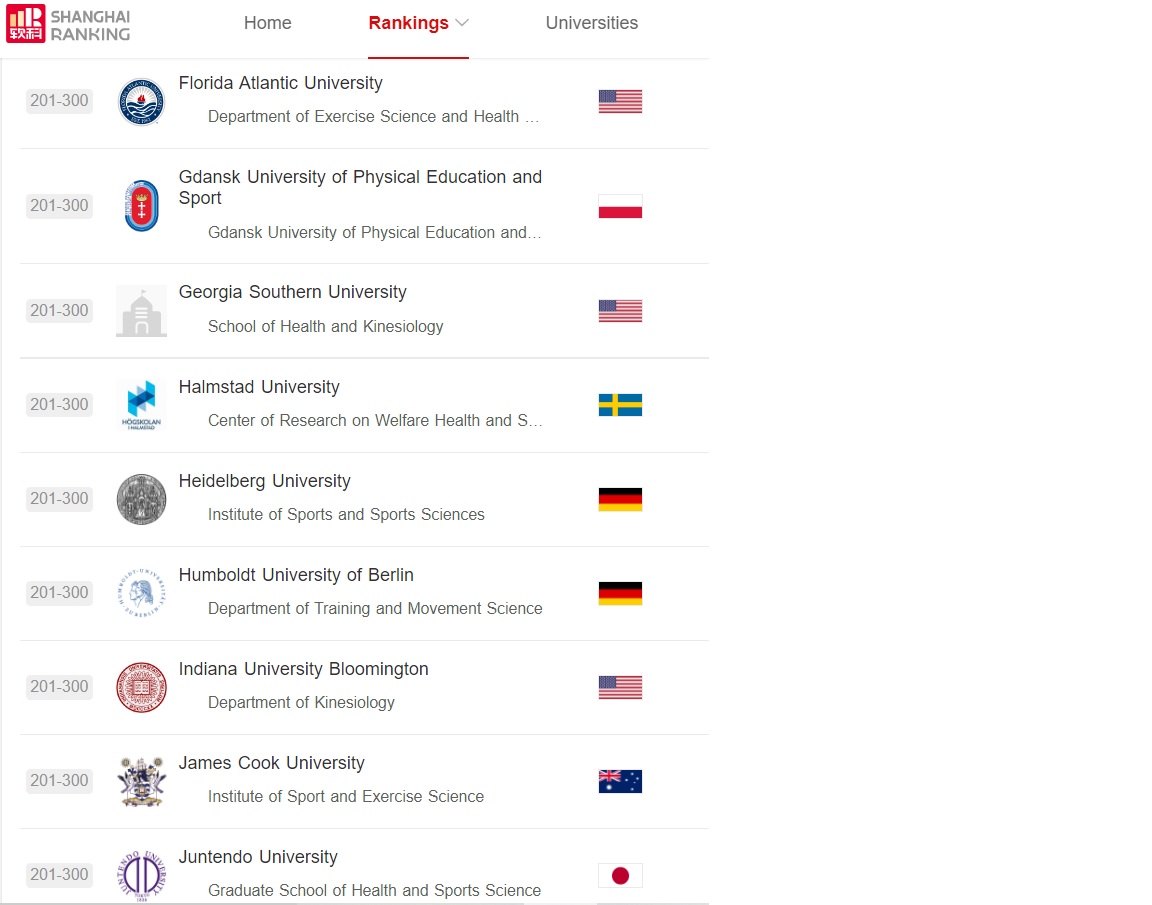 Tak zwany ranking szanghajski to najbardziej prestiżowy ranking uczelni na świecie. Obejmuje on także uczelnie sportowe. W tegorocznym Shanghai Ranking’s Global Ranking of Sport Science Schools and Departments znalazła się także gdańska AWFiS!