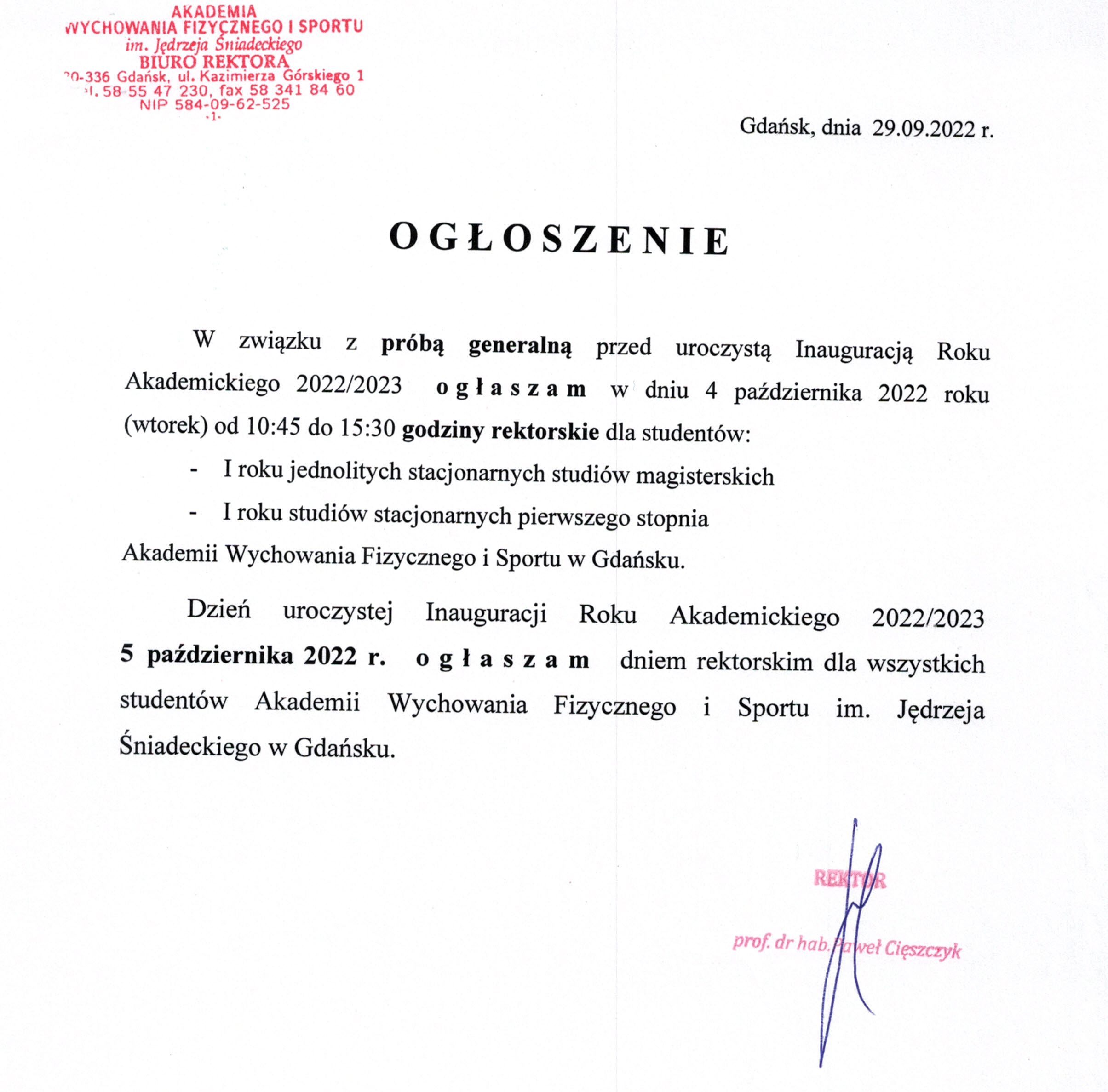 Godziny Rektorskie