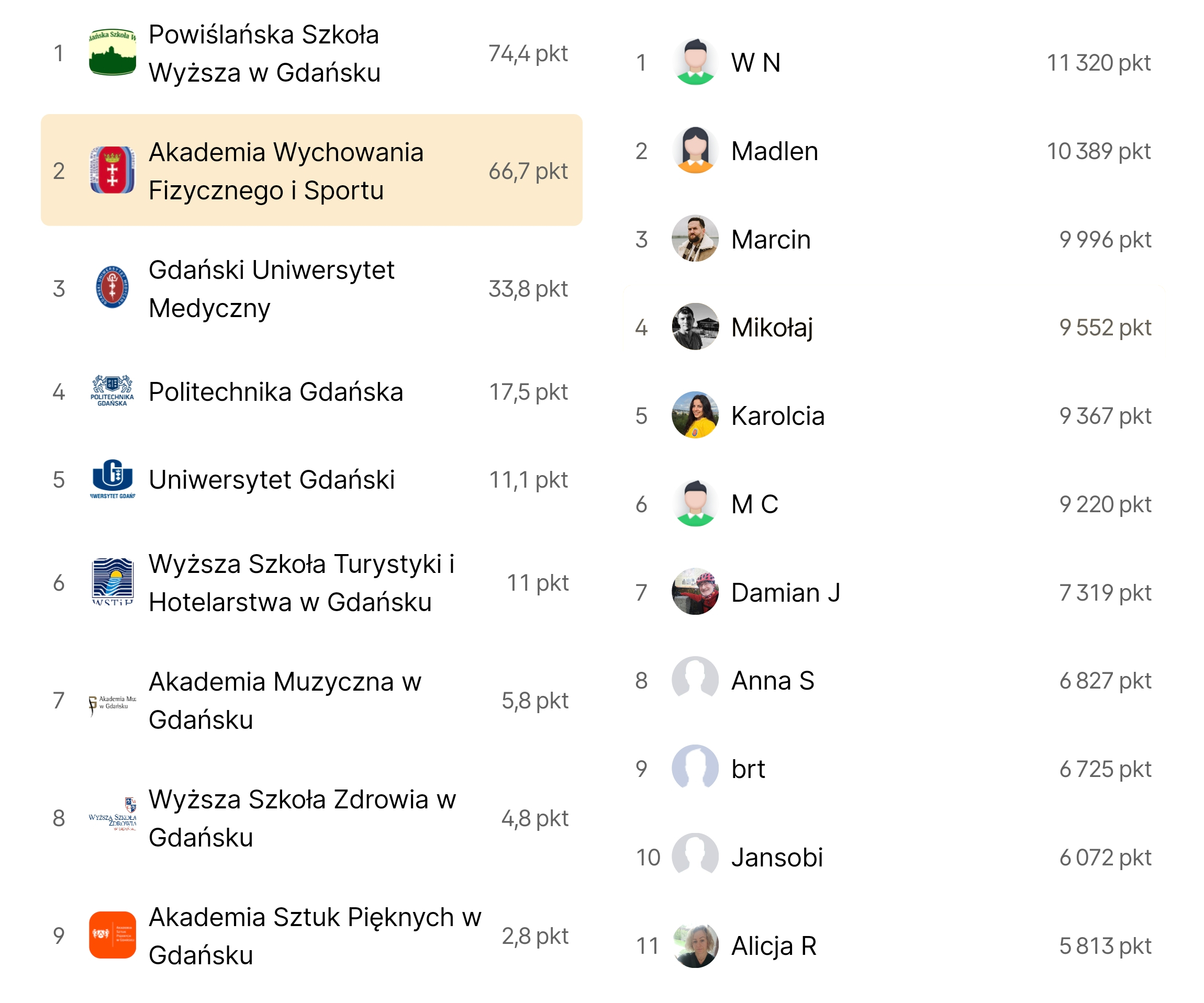 Akademia Wychowania Fizycznego i Sportu w Gdańsku zdobyła Srebro w Kampanii „Kręć Kilometry dla Gdańska”!