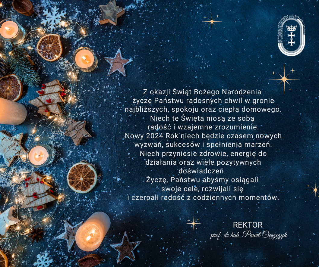 Niech te Święta będą czasem radości, spokoju i ciepła w gronie najbliższych. Dziękuję Wam za Wasze zaangażowanie, wysiłek i poświęcenie, które sprawiają, że nasza uczelnia rozwija się i osiąga nowe sukcesy.