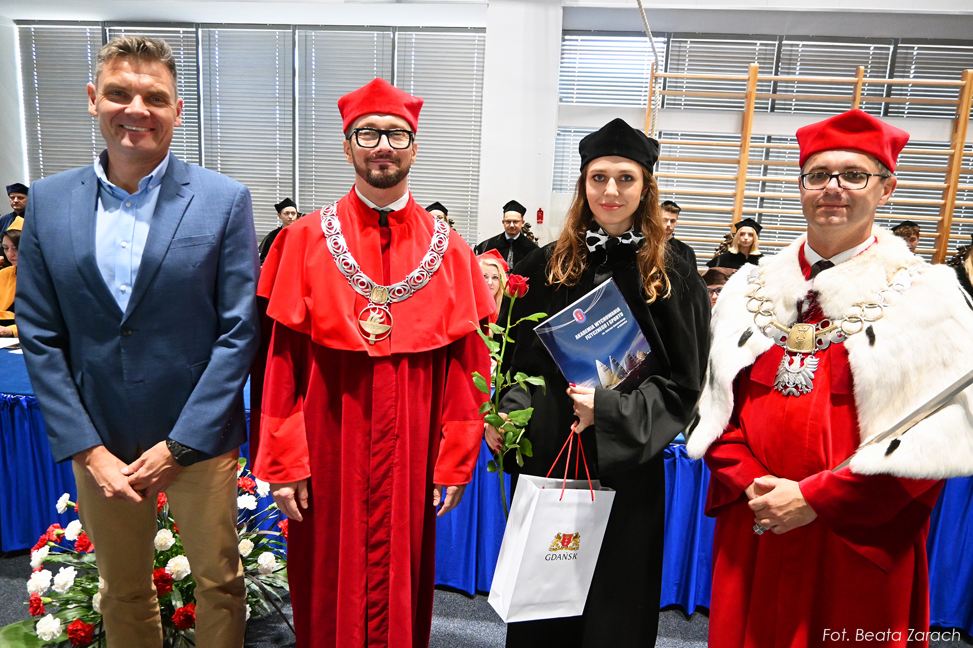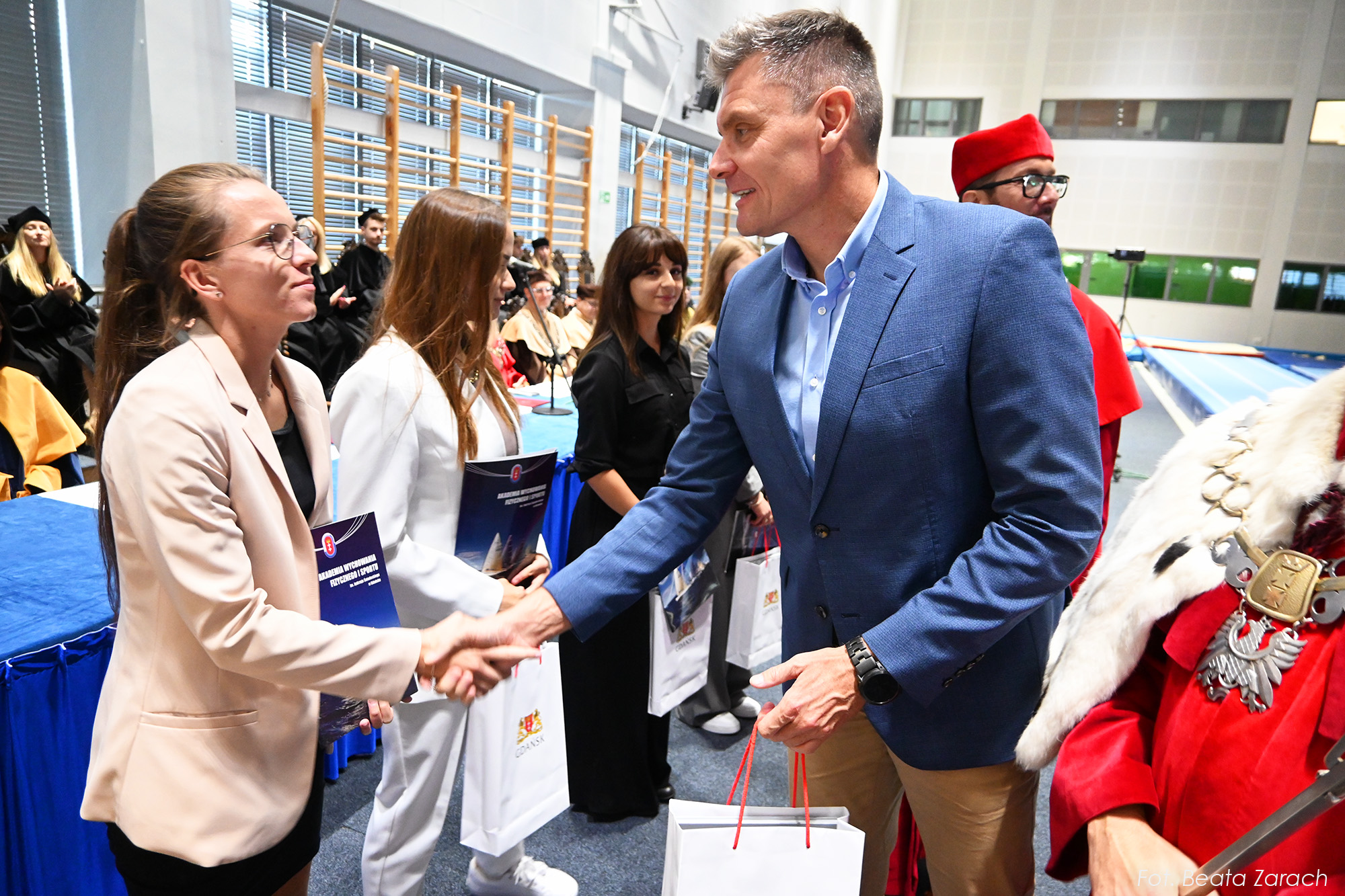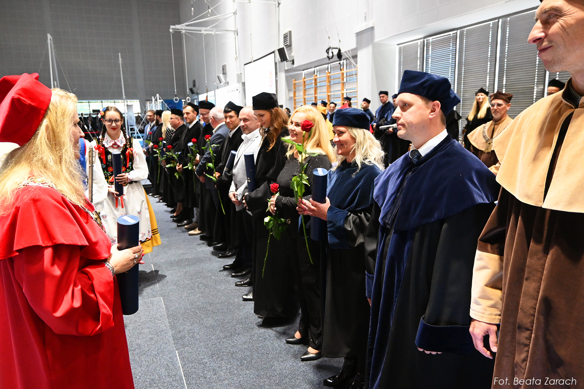 Kolejnym punktem programu była immatrykulacja studentów pierwszego roku, dokonana przez Prorektora ds. kształcenia, dr hab. Marcina Dornowskiego prof. AWFiS, a także ślubowanie i wręczenie dyplomów nowym doktorom, które otrzymali: dr Agata Grzybkowska, dr Dawid Perenc, dr Katarzyna Świtała, dr Bartosz Gondek, dr Maciej Chroboczek, dr Krzysztof Fostiak, dr Zbigniew Jost, dr Kinga Łosińska oraz doktorom habilitowanym: dr hab. Dominika Wilczyńska, dr hab. Sylwester Kujach, dr hab. Marcin Pasek. Ponadto listy gratulacyjne za wyróżnione prace doktorskie otrzymali dr Agata Grzybkowska oraz dr Kinga Łosińska.