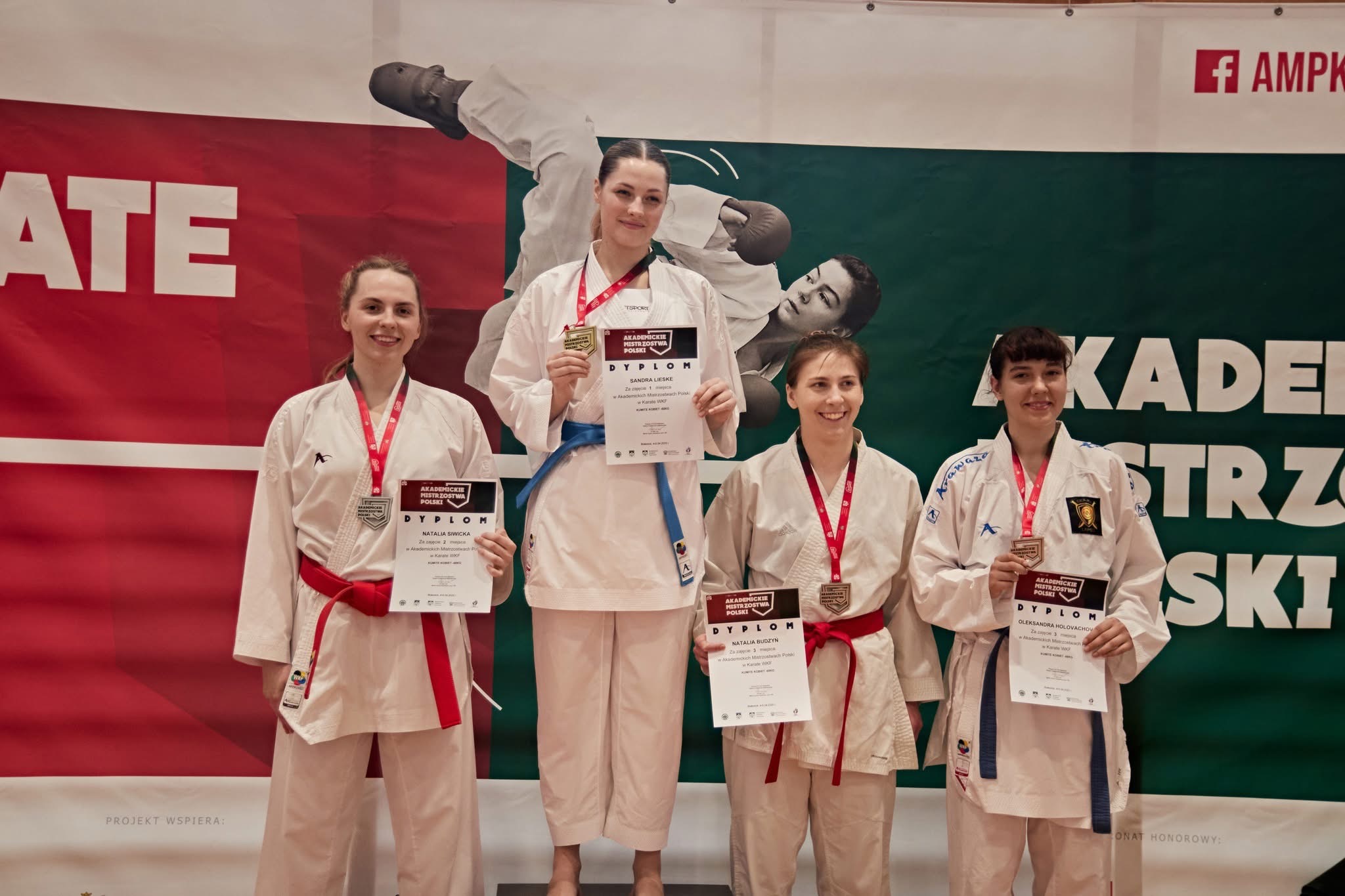 Złote medale dla AWFiS zdobyły Zuzanna Bernaciak w kumite do 50 kg oraz Sandra Lieske w kategorii do 68 kg. Brązowe krążki wywalczyły Sandra Rancan w kumite do 61 kg oraz kobieca drużyna AWFiS w konkurencji kumite zespołowego.