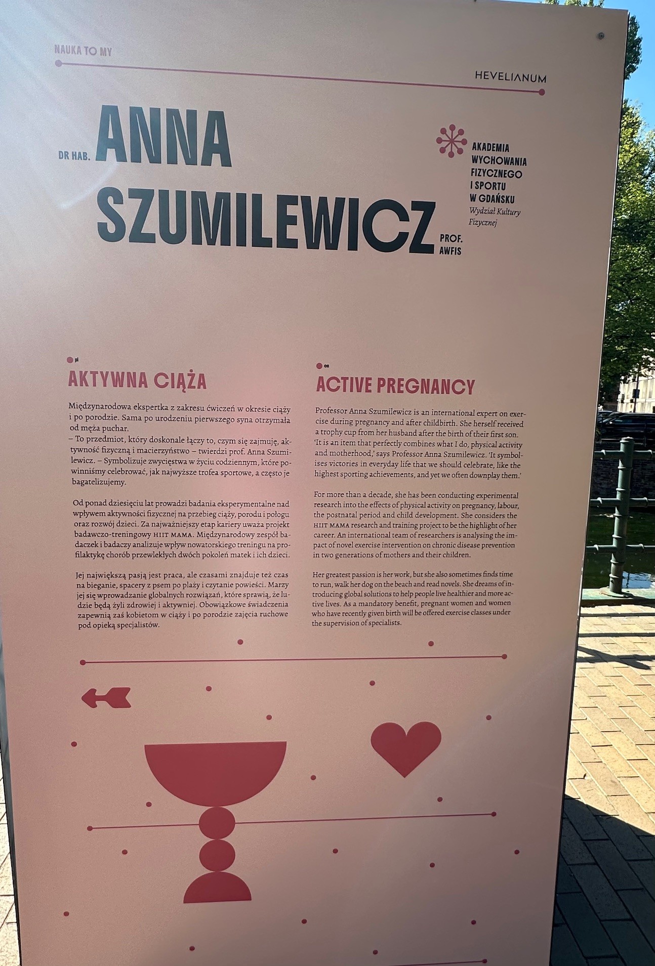 Z przyjemnością informujemy, że dr hab. Anna Szumilewicz, prof. AWFiS znalazła się w grupie 12 osób wybranych do plenerowej wystawy „Nauka to My!”. Podstawą zgłoszenia do konkursu była jej dotychczasowa działalność naukowa i wdrożeniowa w obszarze aktywności fizycznej w ciąży i po porodzie.
