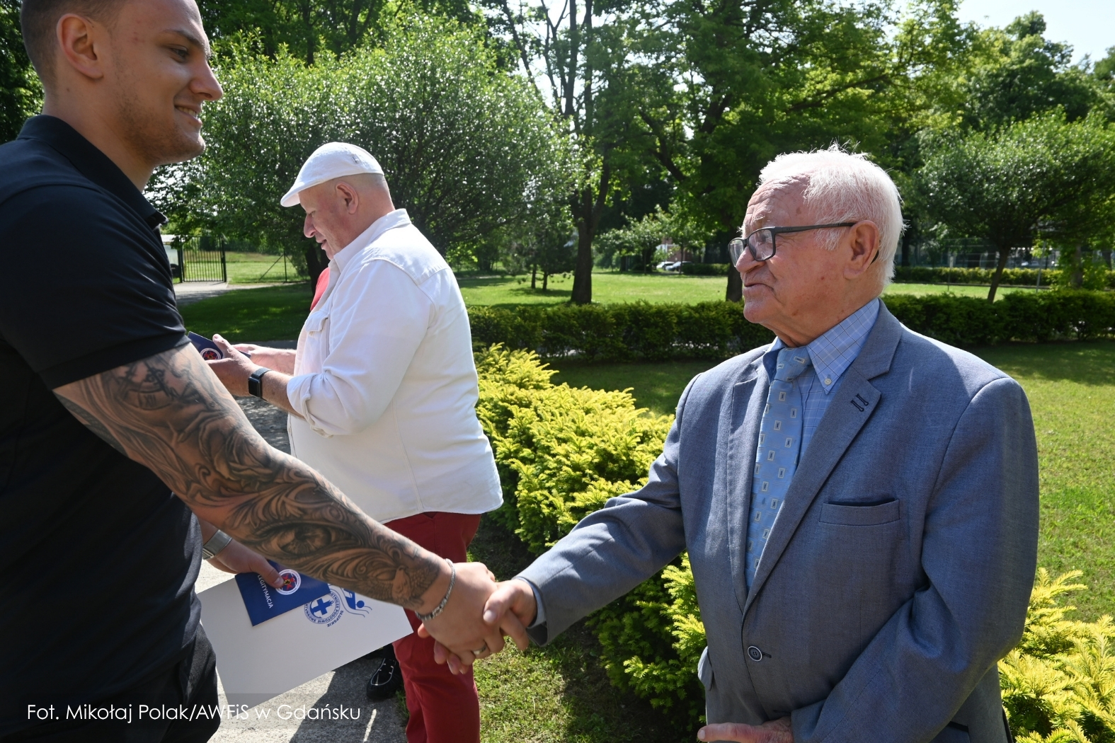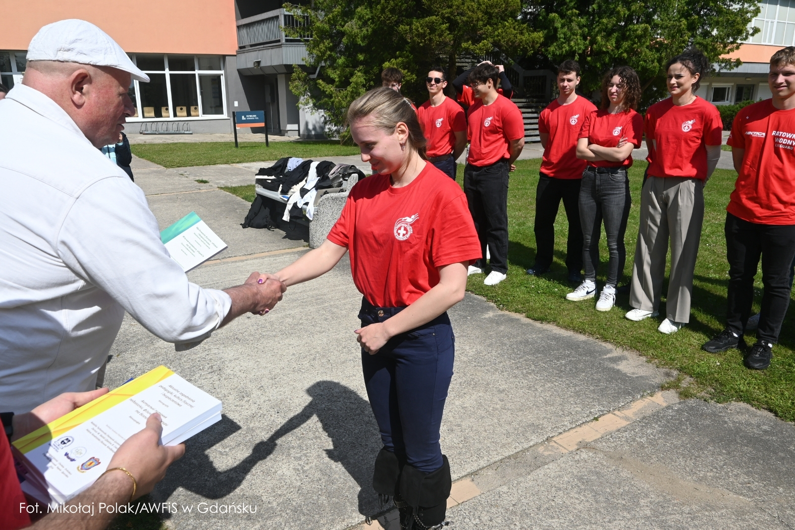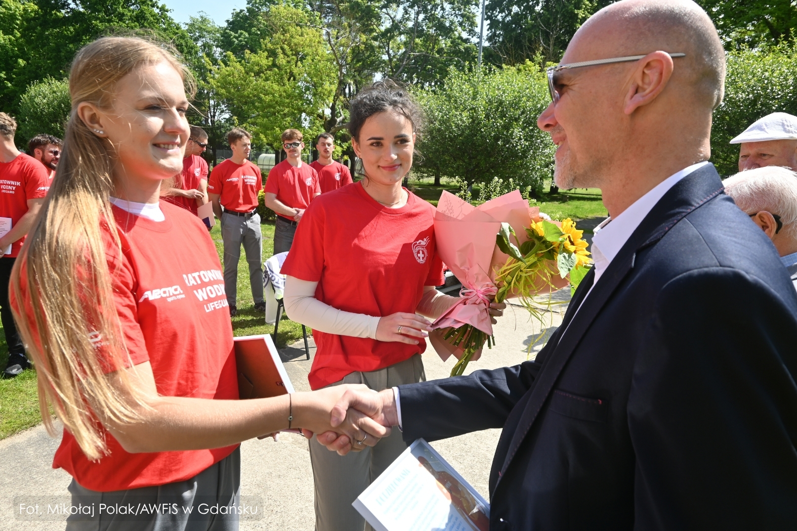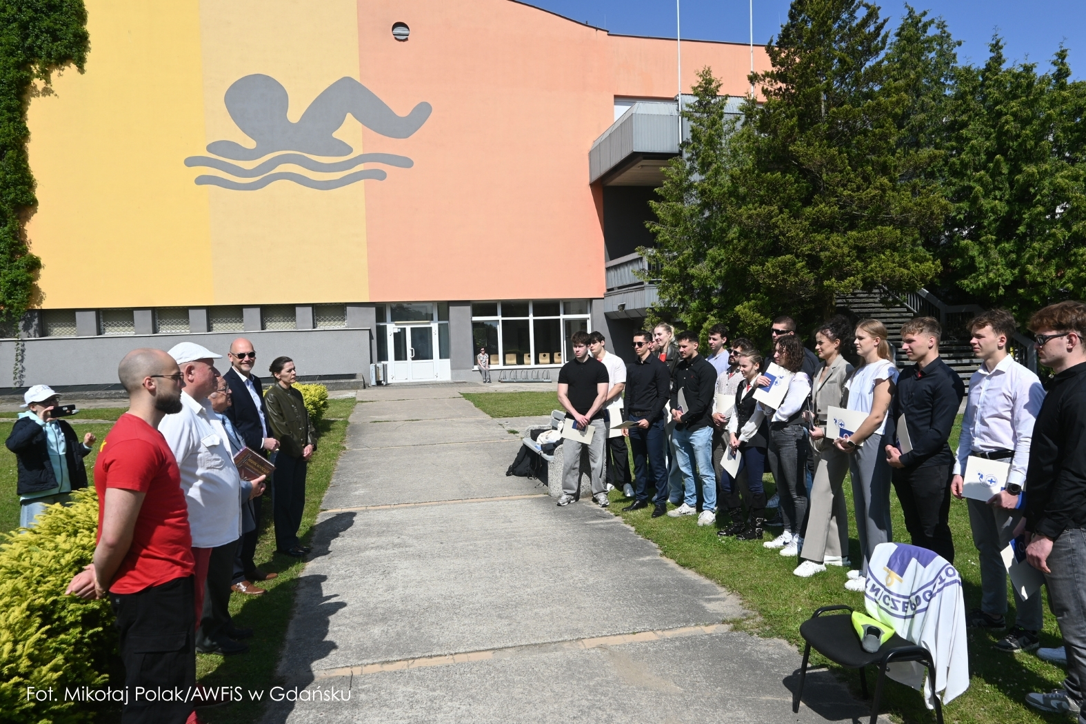Gdańsk, 13 czerwca 2025 r. – przed pływalnią AWFiS odbyła się uroczysta ceremonia wręczenia państwowych uprawnień Ratownika Wodnego dziewiętnastu studentom III roku nowego kierunku Sprawność Fizyczna w Siłach Specjalnych. To pierwsza w Polsce grupa przyszłych specjalistów sił specjalnych, która podczas studiów zdobyła również kwalifikacje ratownika wodnego.