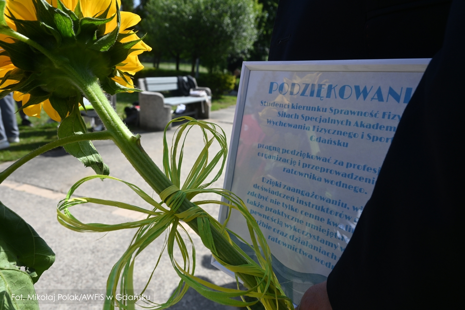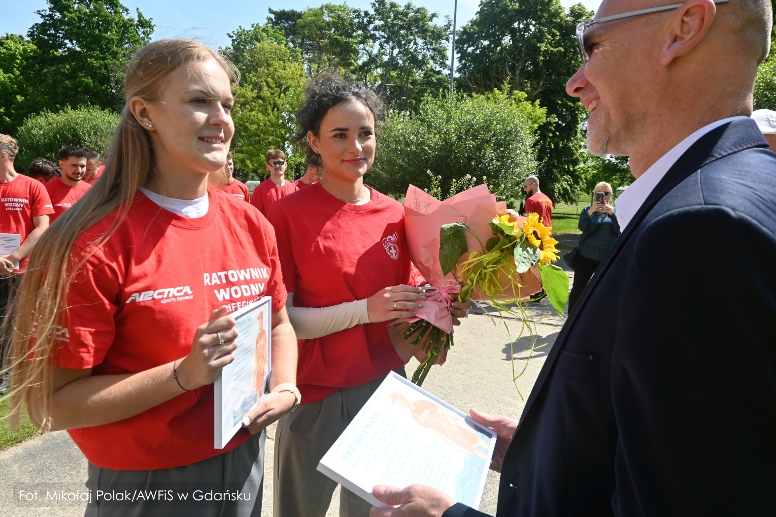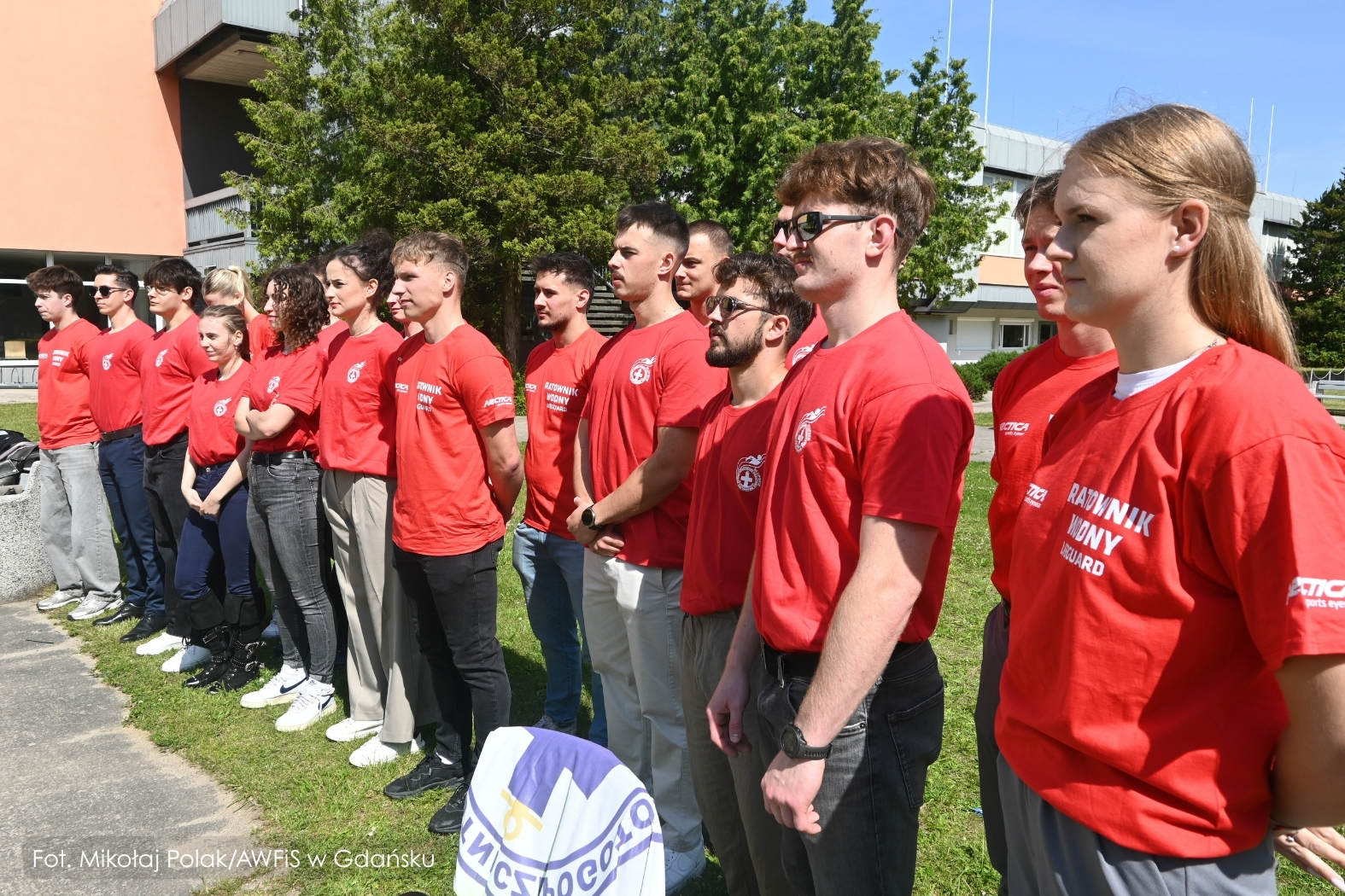 Gdańsk, 13 czerwca 2025 r. – przed pływalnią AWFiS odbyła się uroczysta ceremonia wręczenia państwowych uprawnień Ratownika Wodnego dziewiętnastu studentom III roku nowego kierunku Sprawność Fizyczna w Siłach Specjalnych. To pierwsza w Polsce grupa przyszłych specjalistów sił specjalnych, która podczas studiów zdobyła również kwalifikacje ratownika wodnego.