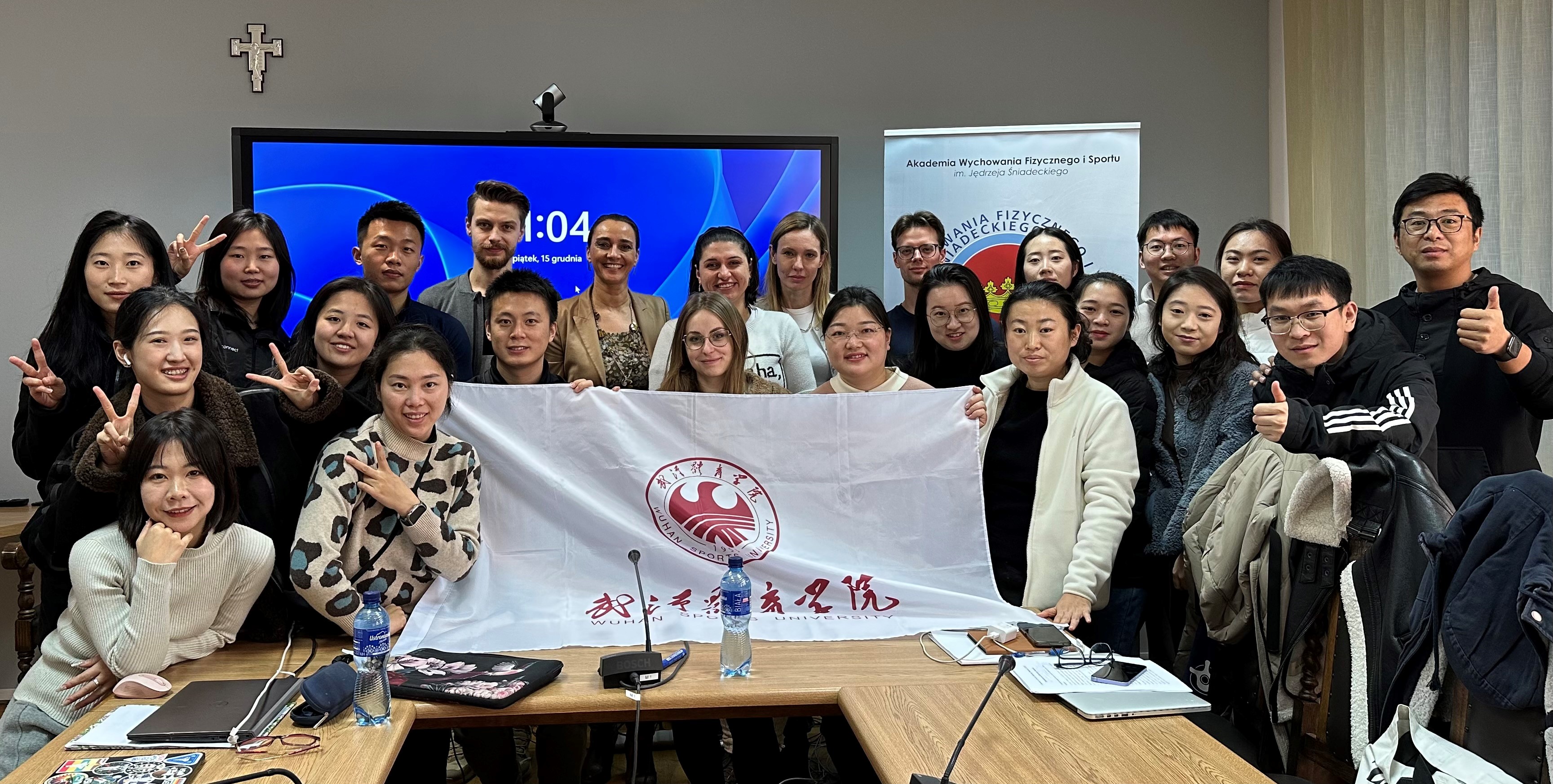 Presentations of research interventions by doctoral students of the AWFiS Doctoral School in accordance with CERT standards, during workshops on „Scientific research methodology in physical culture sciences” during a research camp as part of inter-university cooperation with Wuhan Sport University, organized by AWFiS in Gdańsk, December 15, 2023.