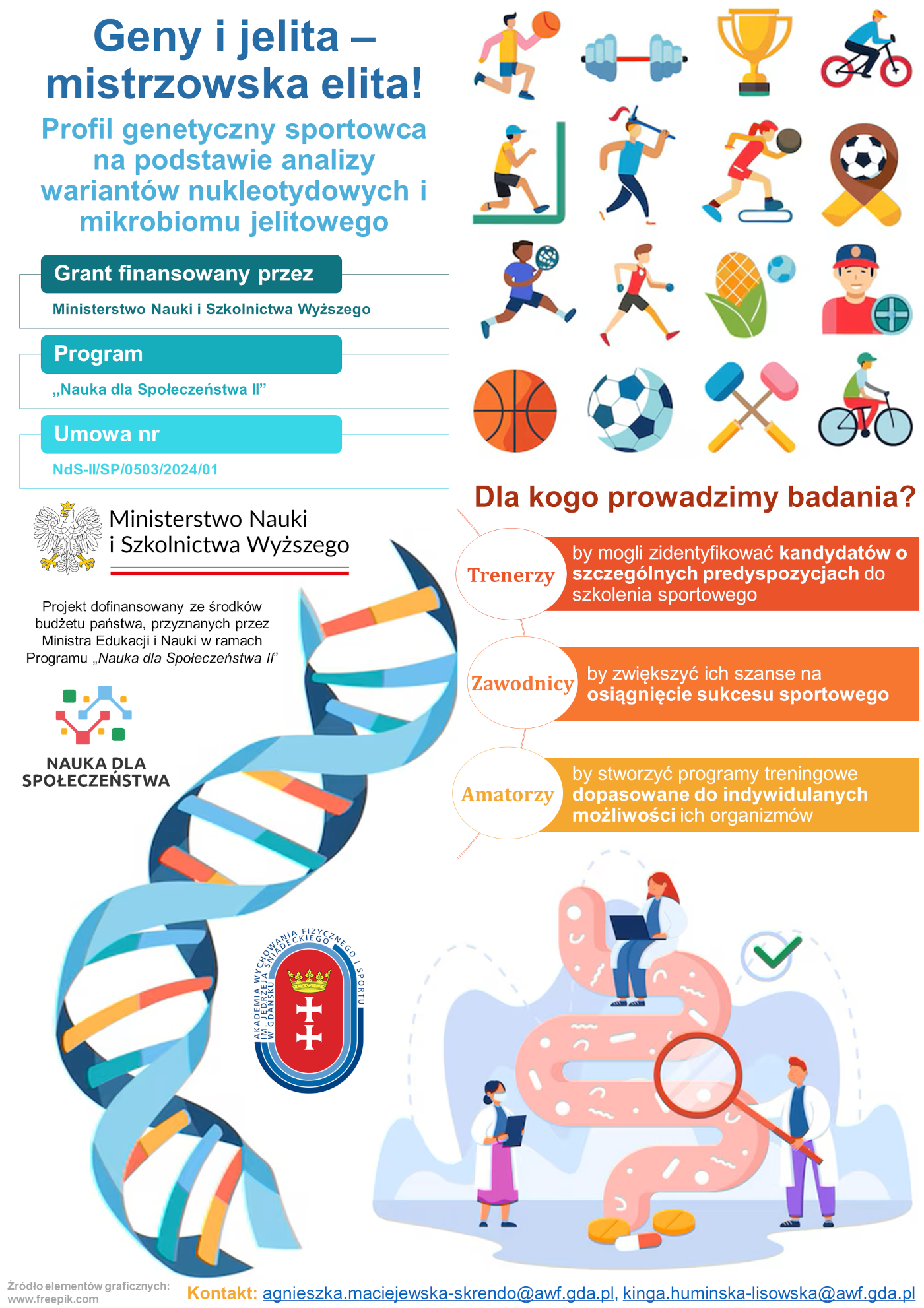 Tytuł projektu: „Profil genetyczny sportowca na podstawie analizy wariantów nukleotydowych i mikrobiomu jelitowego”
