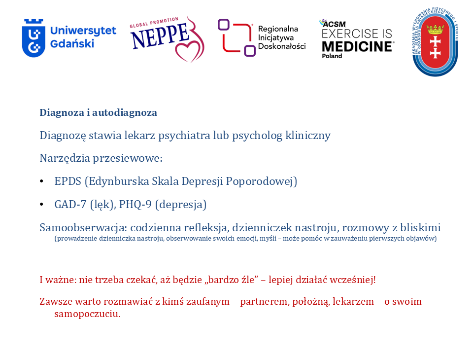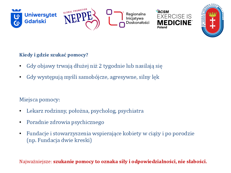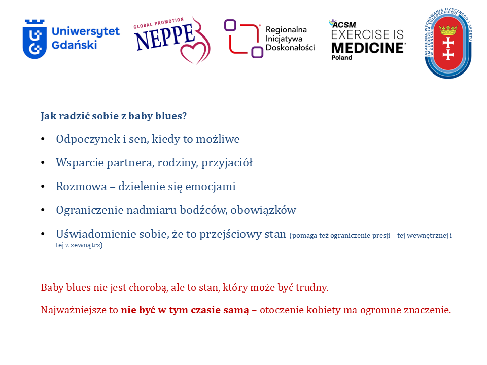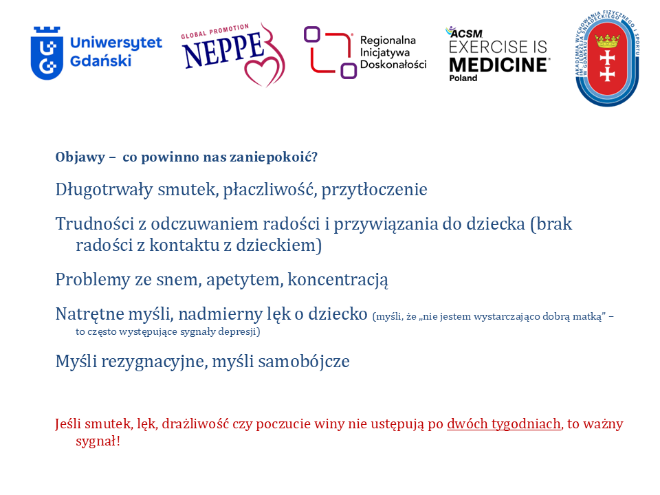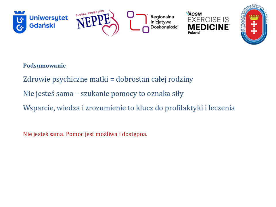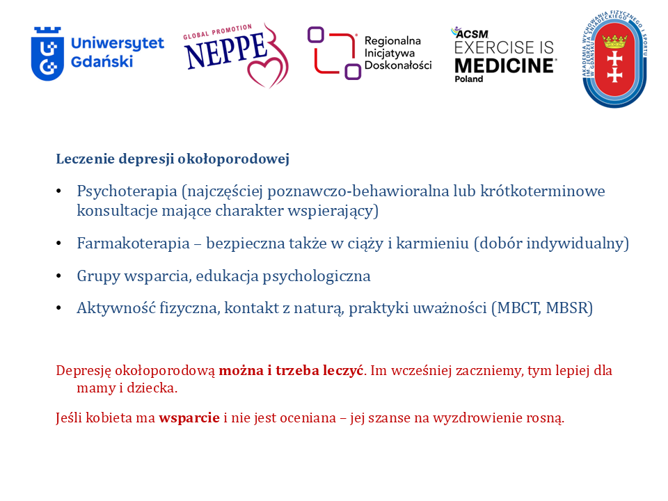 - 13.45-14.15 Wykład na temat zdrowia psychicznego w okresie okołoporodowym – dr Tamara Walczak-Kozłowska (Uniwersytet Gdański)