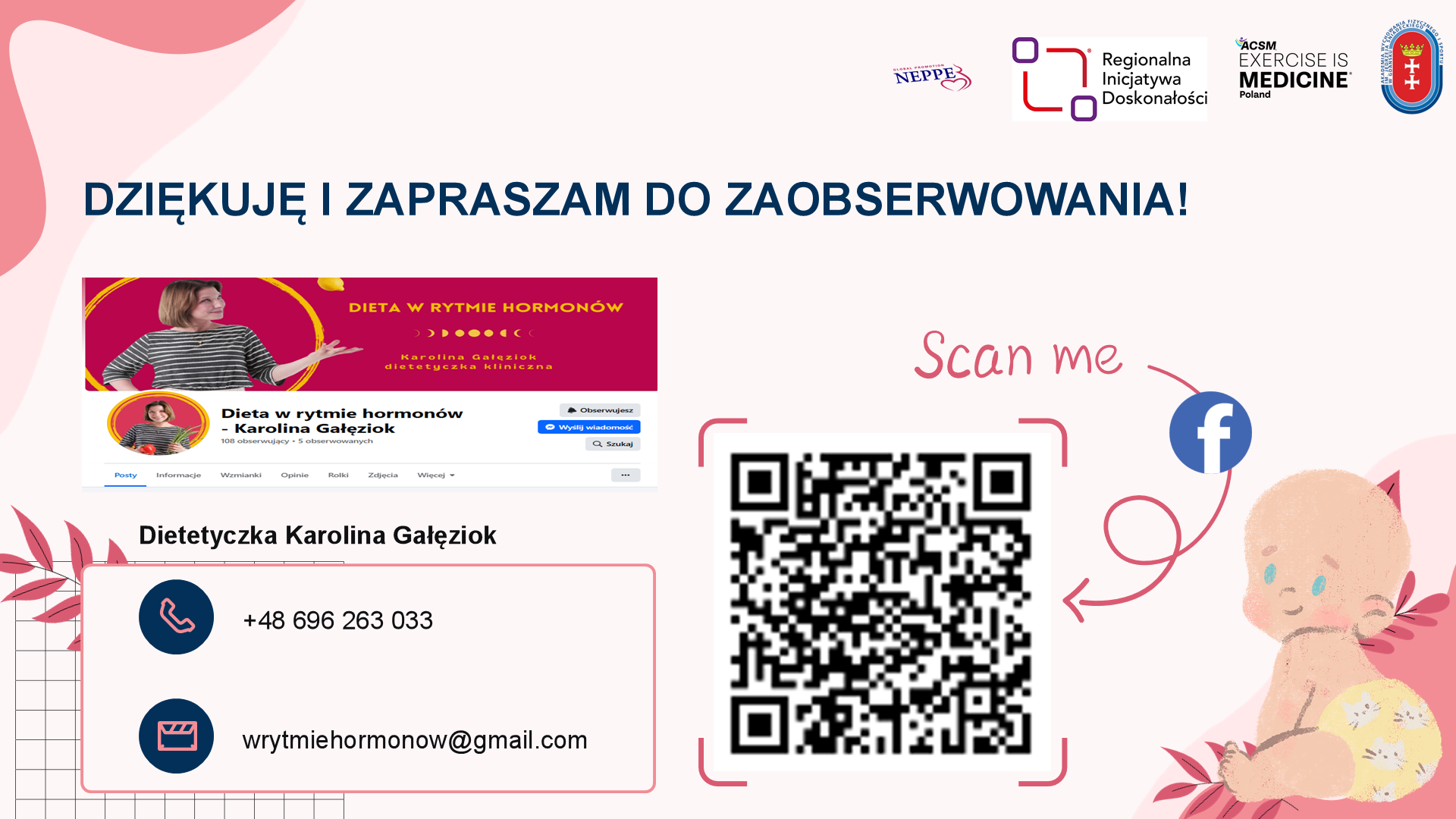 - 12.45-13.15 Wykład na temat żywienia w okresie okołociążowym – mgr Karolina Gałęziok (Akademia Wychowania Fizycznego i Sportu),
