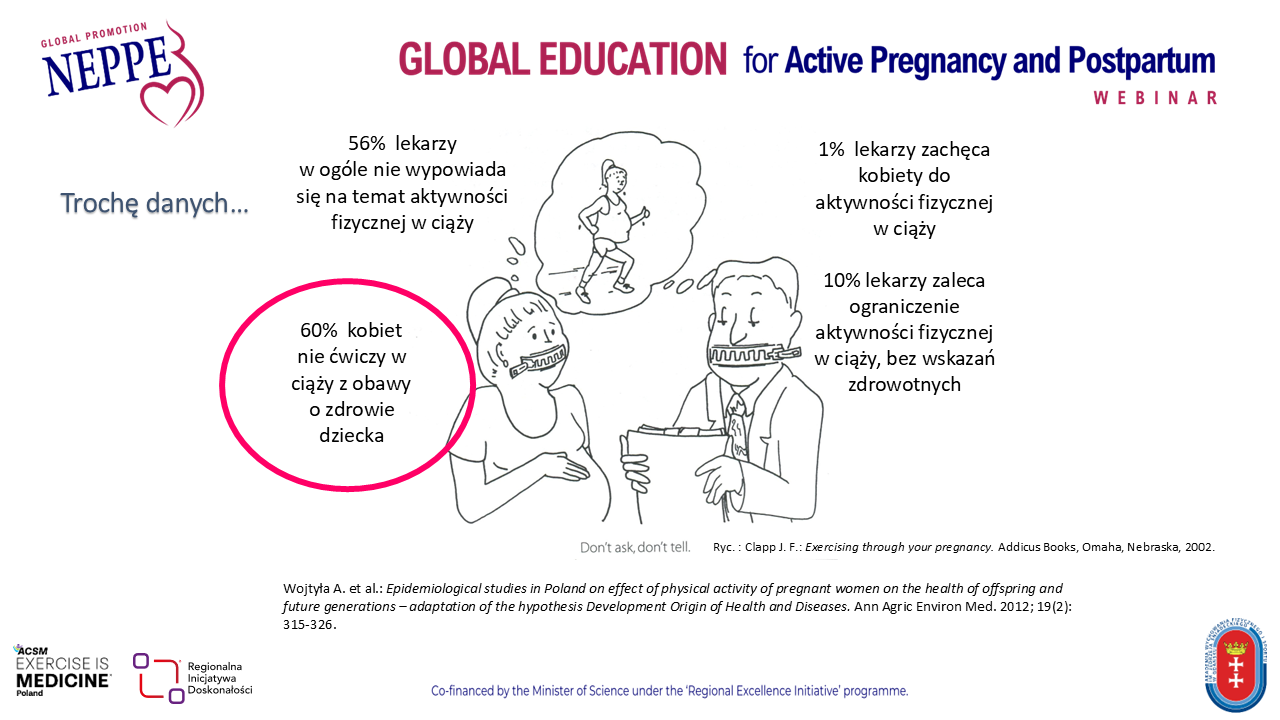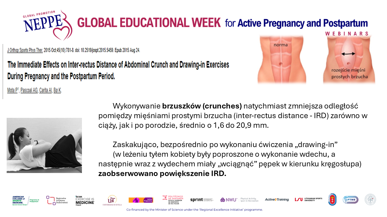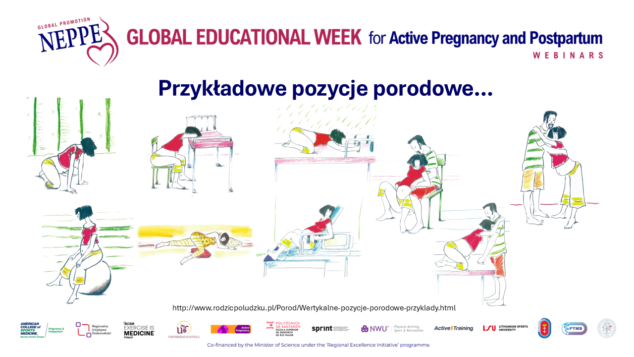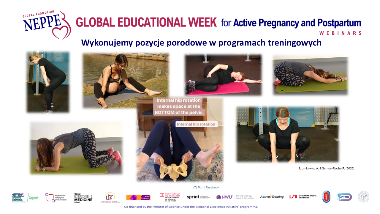 - 11.00-12.30 Zajęcia ruchowe (60 minut) oraz edukacja na temat ćwiczeń w ciąży i po porodzie – dr hab. Anna Szumilewicz, prof. AWFiS (Akademia Wychowania Fizycznego i Sportu),