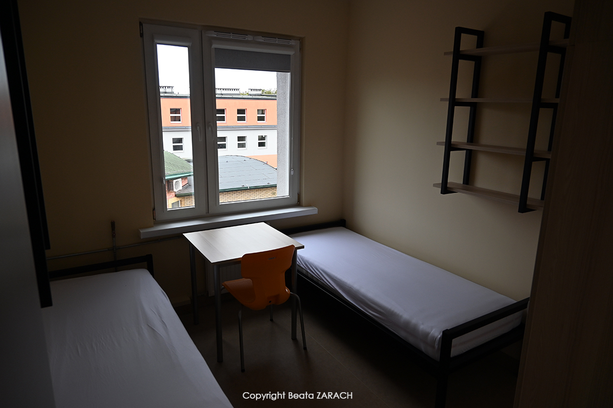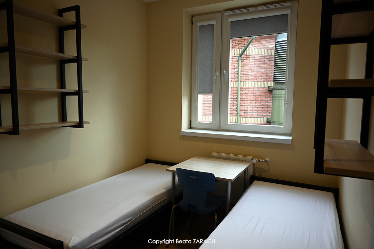 Student dormitory of Gdansk University of Physical Education and Sport is located at 33 Czyżewskiego Street – on the premises of GUPES. Student rooms are located in block B – second and third floor (186 places), and block C – first, second and third floor (176 places). The floors are divided into segments, which consist of two double rooms with shared bathroom, toilet, kitchen with equipment (refrigerator, stove) in block B.