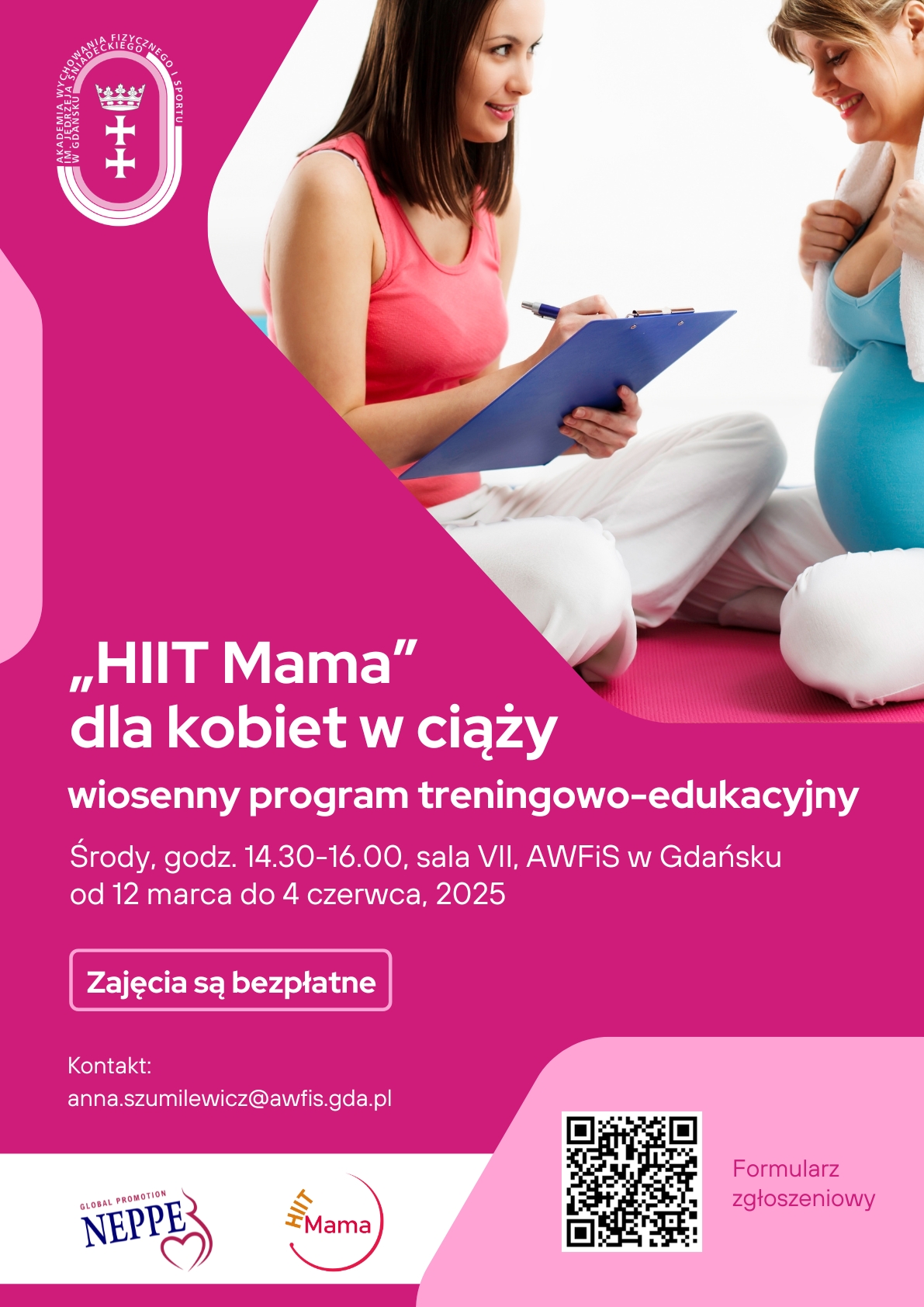 Gdańsk University of Physical Education and Sport expectant mothers to join the „HIIT Mama” program. This initiative combines specially tailored fitness sessions with educational content on a healthy lifestyle during pregnancy.